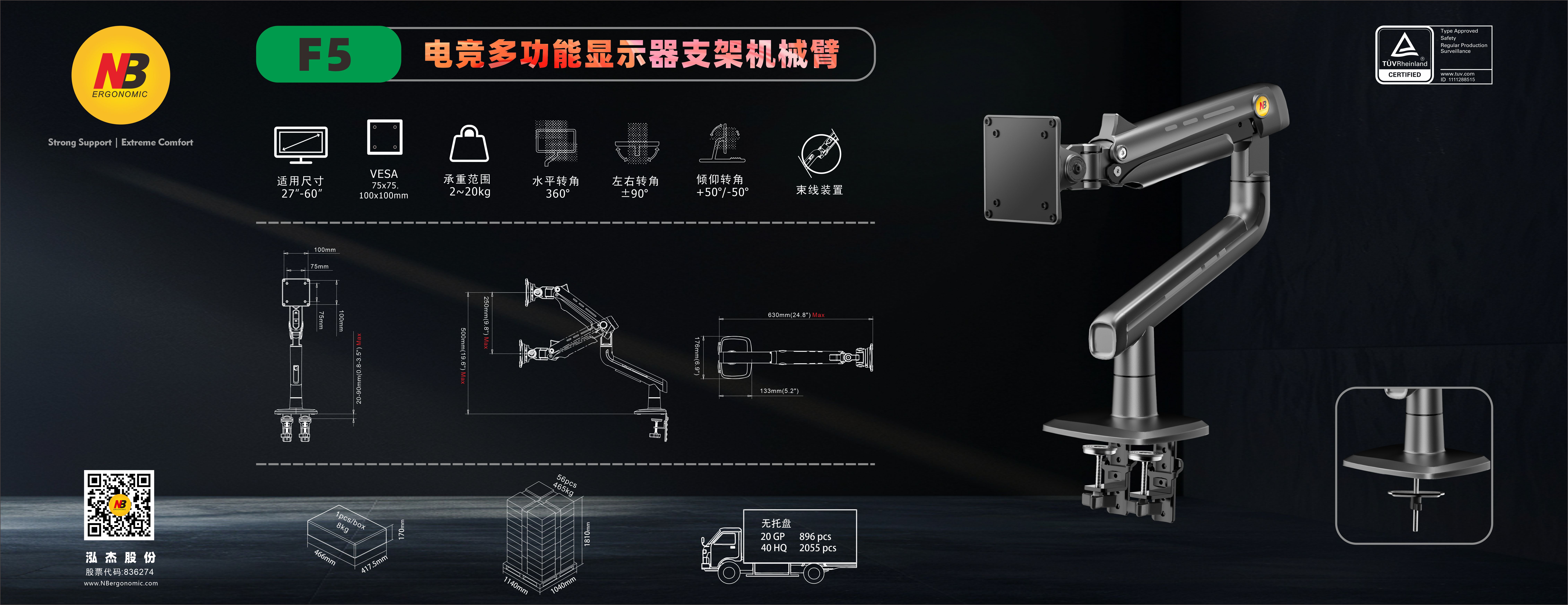 F5 27-60英寸 电竞显示器支架